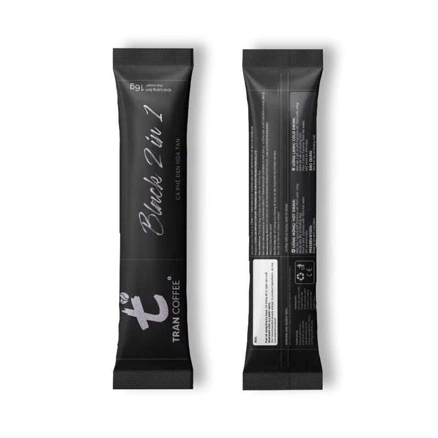 Tran Coffee Black 2in1 instant black coffee is made from quality ingredients with clean, pure coffee beans, perfectly blended between Arabica & Robusta coffee beans, bringing a moderate sweetness combined with a characteristic bitter, strong aroma that helps awaken the taste buds, arousing excitement for a sober, energetic working day.