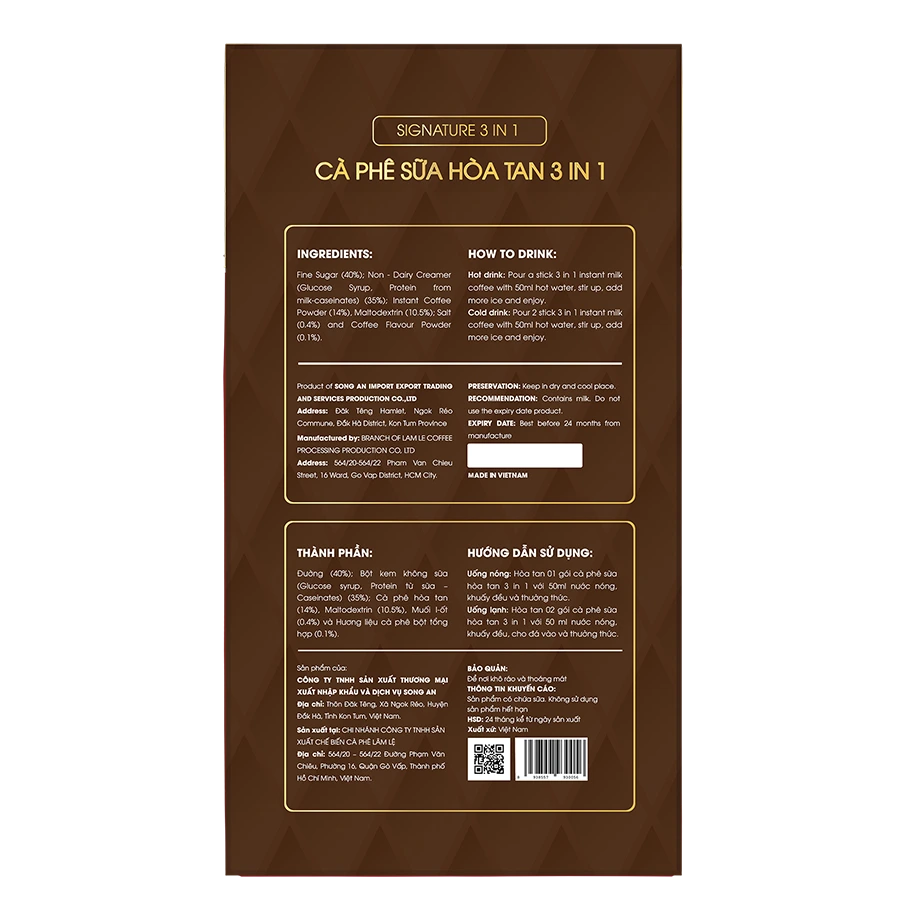 TRẦN Coffee 3in1 is made from high-quality, pure coffee beans blended perfectly with milk and sugar to create a rich, smooth, and indulgently sweet flavor. The harmony of creamy sweetness and signature coffee bitterness awakens your senses, inspiring energy and focus to start your day.